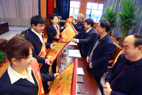 會上,董事、副總經理王哲波同志宣讀了《關于2015年經營目標考核兌現的決定》。董事、總經理助理王黑芽同志宣讀《2016年生產經營方案》。副董事長、運城盛世房地產開發(fā)有限公司總經理趙永新同志宣讀了《關于公司機構調整及人員任免的決定》。副董事長、總經理王立平同志宣讀了《關于2015年度先進集體和先進個人的表彰決定》。大會對2015年度“先進單位(部室)”、“先進項目部” 、“勞動模范”、“先進個人”進行表彰。