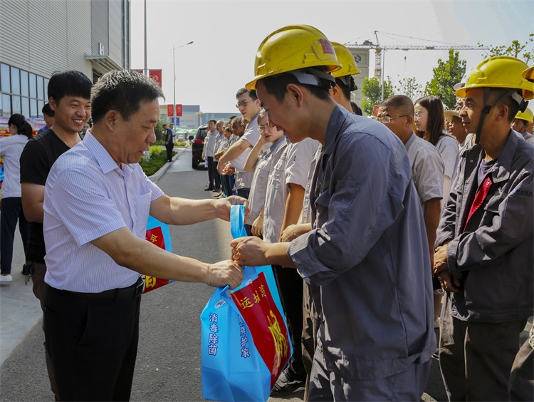 8月10日上午,運城市總工會黨組書記、常務(wù)副主席李志民,市總工會黨組成員、副主席秦全發(fā)帶領(lǐng)工作人員來到華兆東南(運城)綠色建筑集成有限公司裝配式建筑產(chǎn)業(yè)基地一線,開展“情系職工、清涼一夏”慰問活動,為炎炎夏日里仍堅守在崗位的一線職工們送上了飲料、罐頭、毛巾、洗發(fā)水、洗衣粉、香皂等防暑降溫物品,讓他們切身感受到了黨和政府以及工會組織的關(guān)懷和溫暖。